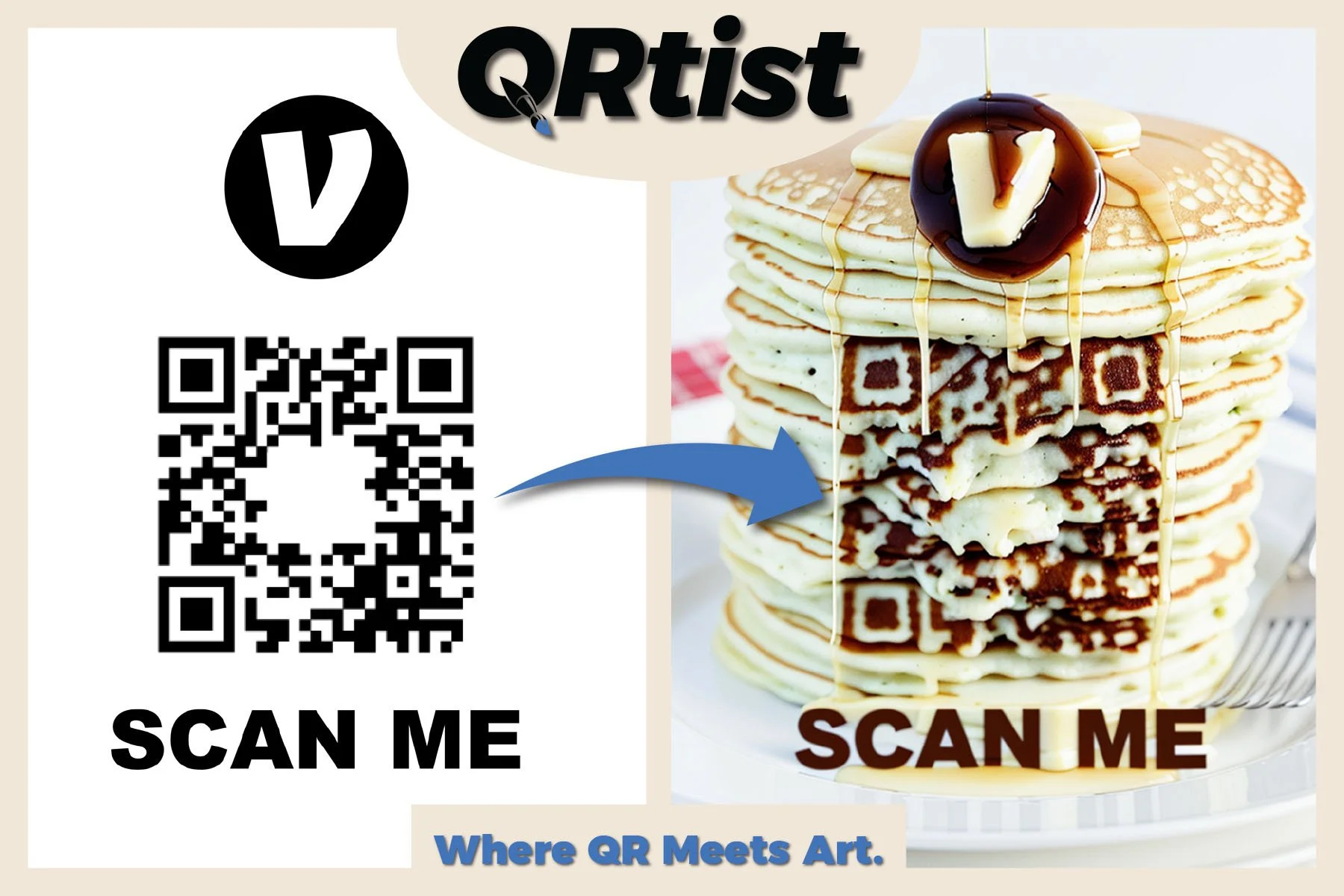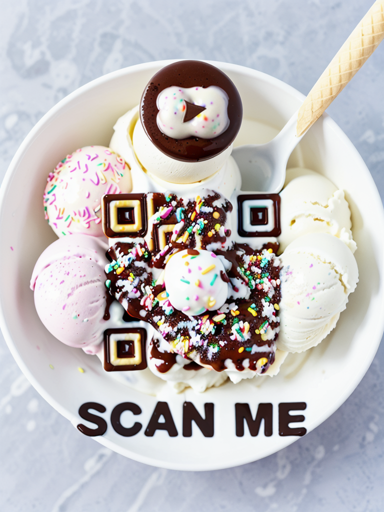 The QR is not placed on top of the image. It is woven into the composition itself, appearing as frosting, tile, fabric, metal, or any surface we design for.